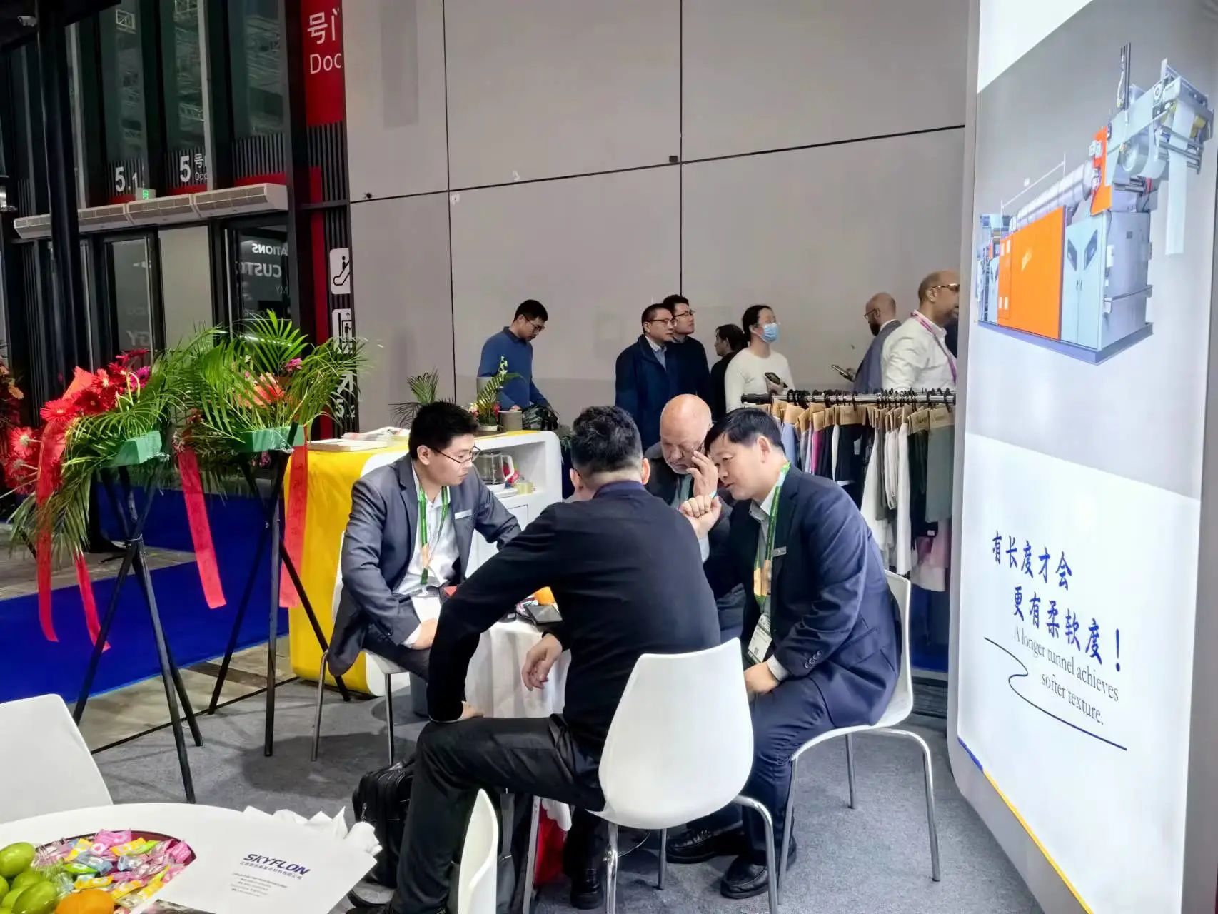 Sa loob ng booth, ang mga kawani ay abala at maayos, na sumasagot sa mga katanungan ng mga customer nang matiyaga at maingat;